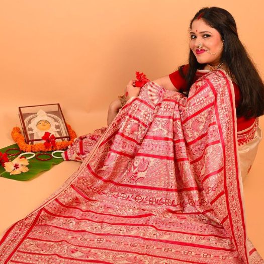 ❝ Loved this worli print customized saree recieved from weavehand. It is absolutely amazing as per my expectation. I searched for this saree for so long online and offline but couldn't find it. Then I tried weavehand for the first time and now will continue ❞