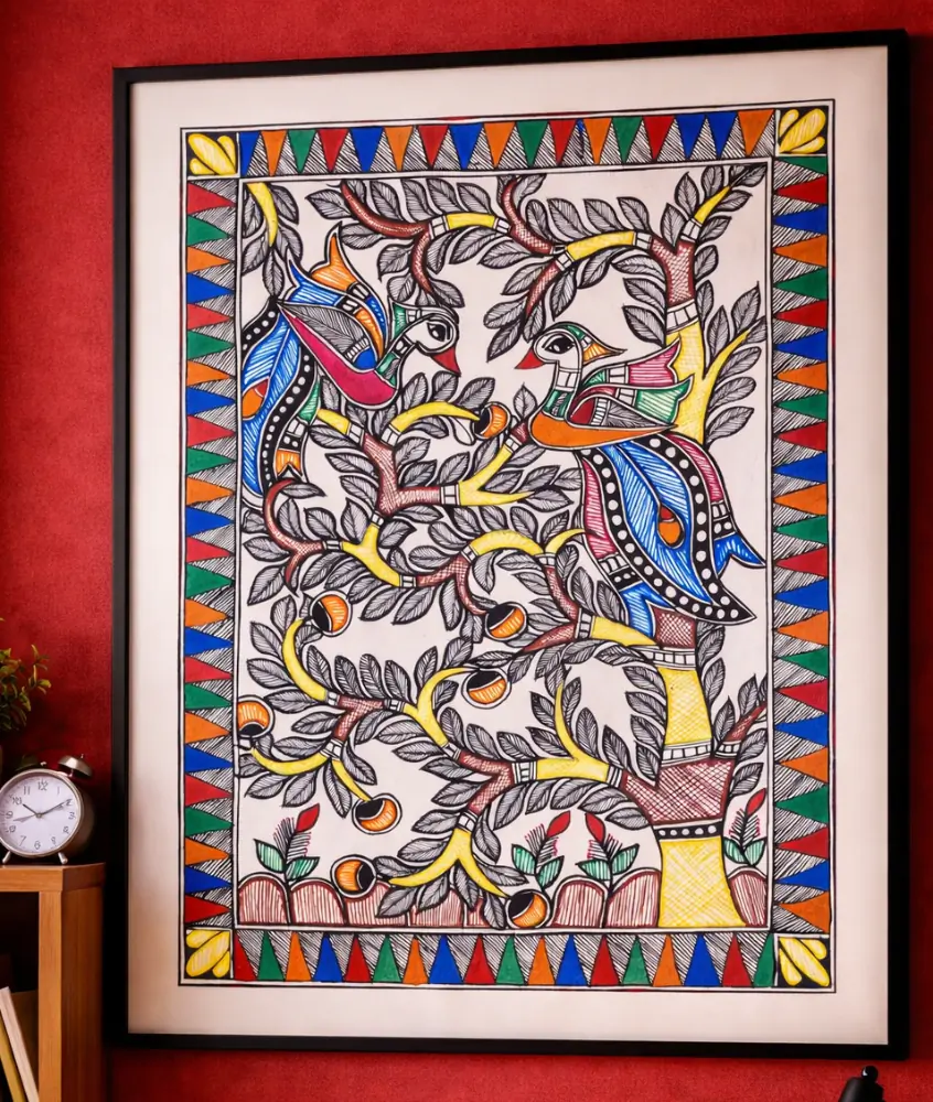 Twin Birds Tree Madhubani Painting