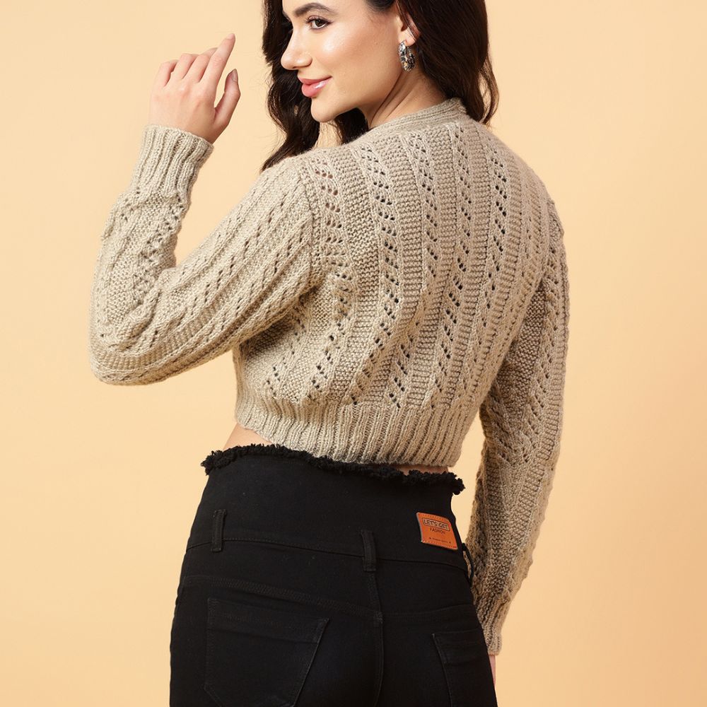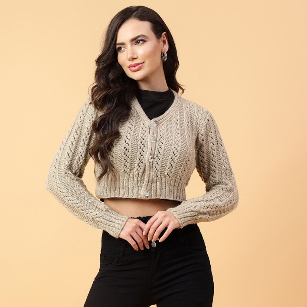 Velvery Handmade Beige Handmade Crochet  V-Neck Cardigan