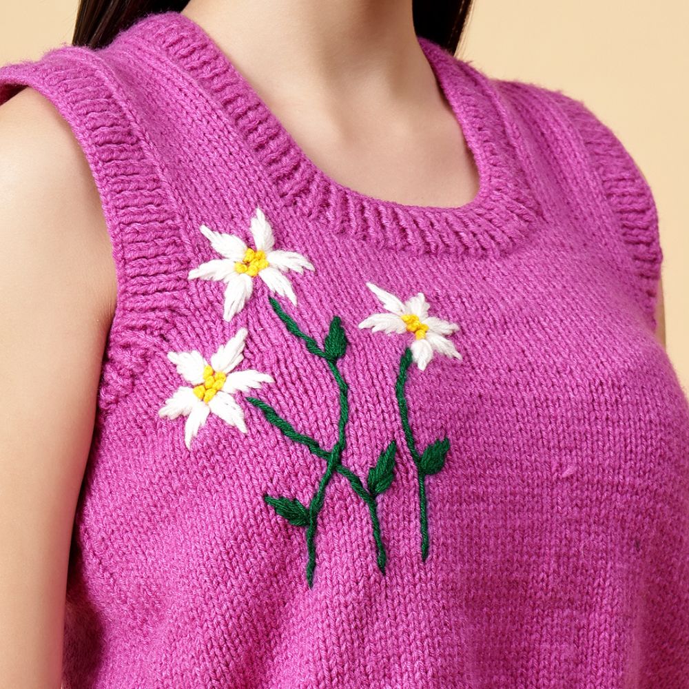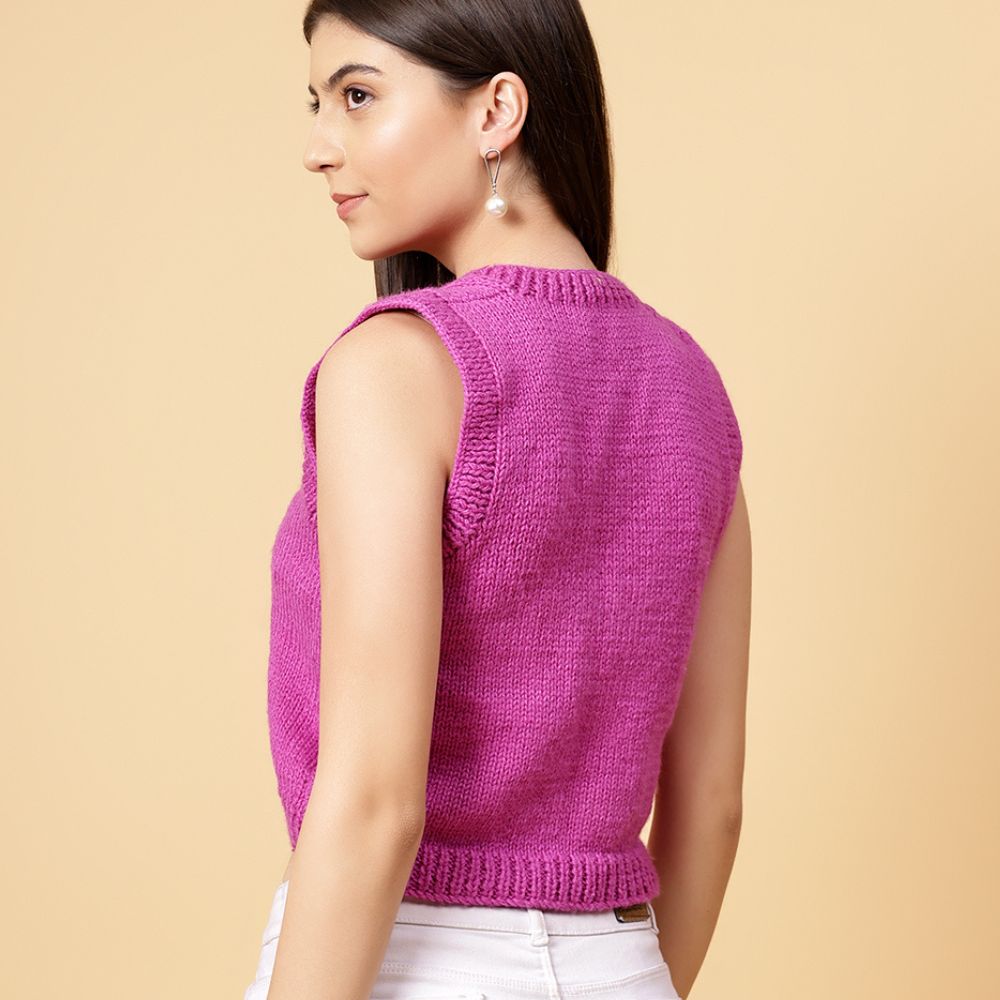 Velvery Handmade Crochet  Round Neck Sweater Vest