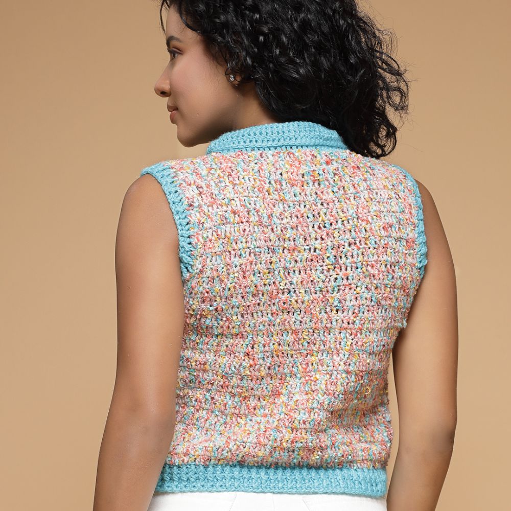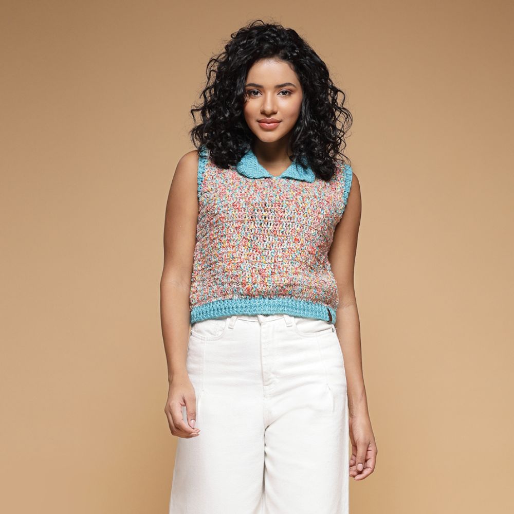 Velvery Handmade Multi Handmade Crochet  V-Neck Sweater Vest