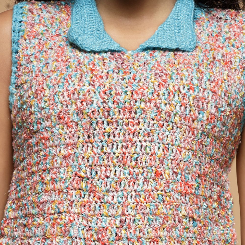 Velvery Handmade Multi Handmade Crochet V-Neck Sweater Vest