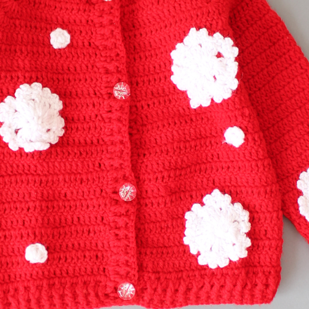 The sweater features a lovely textured pattern throughout, giving it a cozy, knitted appearance.There are delicate white flower-like embellishments scattered across the front and sleeves.The cardigan has a row of white buttons down the center for easy fastening.Overall, it’s a charming and warm addition to any wardrobe. Color: The sweater is a vibrant red. Style: It’s a cardigan with long sleeves. Pattern: Self Design Neck: Round Hooded Neck style. Closure: It has buttons on the front. Crafted with care, each sweater is 100% handmade, ensuring the highest quality for your little ones. Our commitment to sustainability shines through in every aspect of production, from sourcing materials to crafting techniques. We use Azo-free dyes, keeping your child's skin and the environment safe. But it's not just about being eco-conscious – our sweaters boast playful designs that spark joy and creativity in children. Plus, every purchase supports rural artisans, empowering communities and preserving traditional craftsmanship. Available in 8 age groups, from newborns to 5-year-olds, Woonie Kids Sweaters are a must-have for every growing adventurer. Washing Care: Hand wash the sweater in cold water or use a gentle machine cycle with mild detergent. Avoid bleach and tumble drying. Lay it flat to dry to prevent stretching. Dispatch :