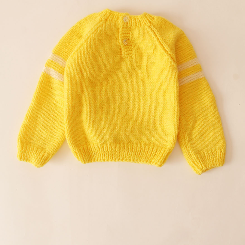 Closure: The sweater seems to be designed as a pullover, with no visible buttons, zippers, or other fastening mechanisms on the front.                                                                                                                                                                                                    Crafted with care, each sweater is 100% handmade, ensuring the highest quality for your little ones. Our commitment to sustainability shines through in every aspec