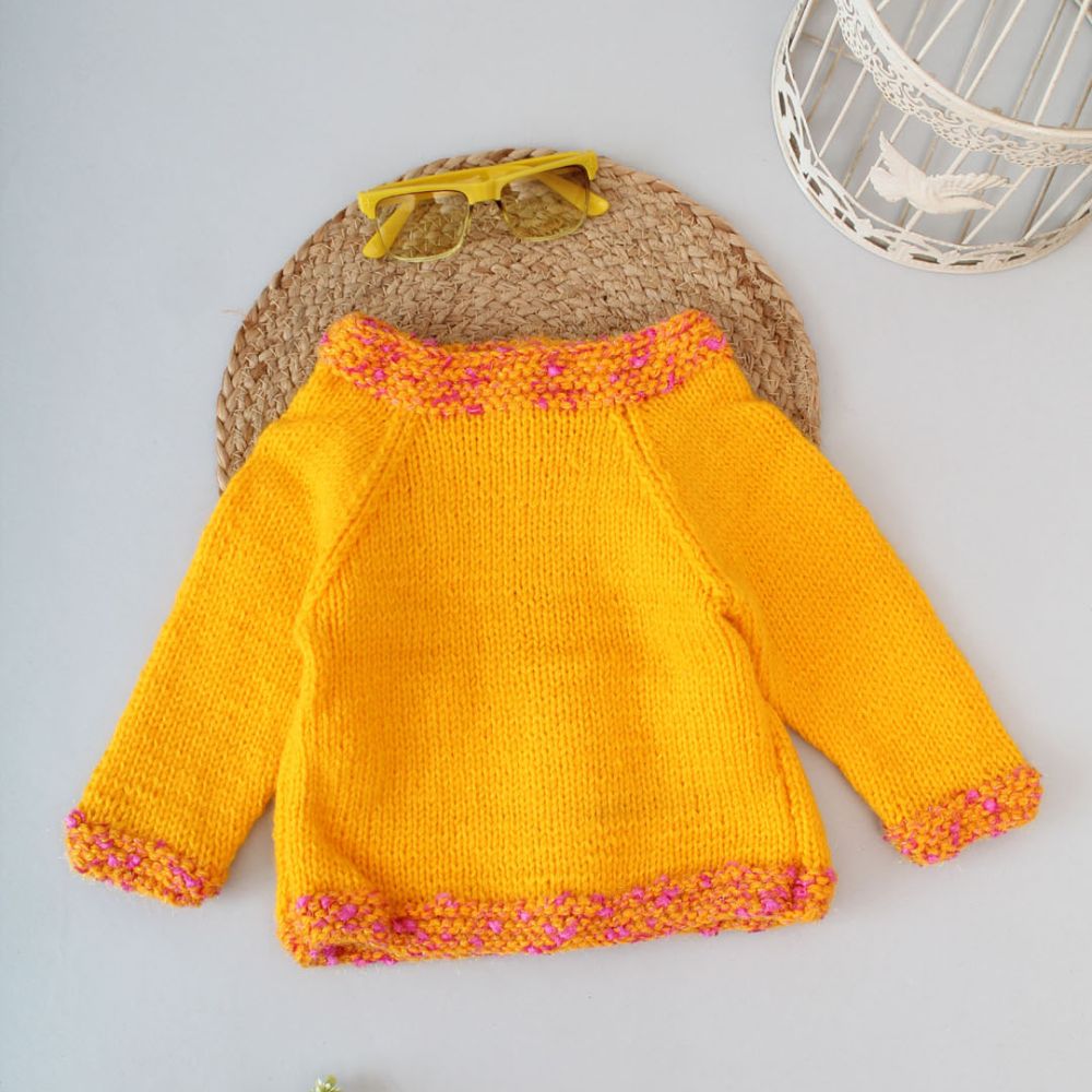 Vibrant Yellow Speckled With Pink and Orange Speckles Border Knit Sweater