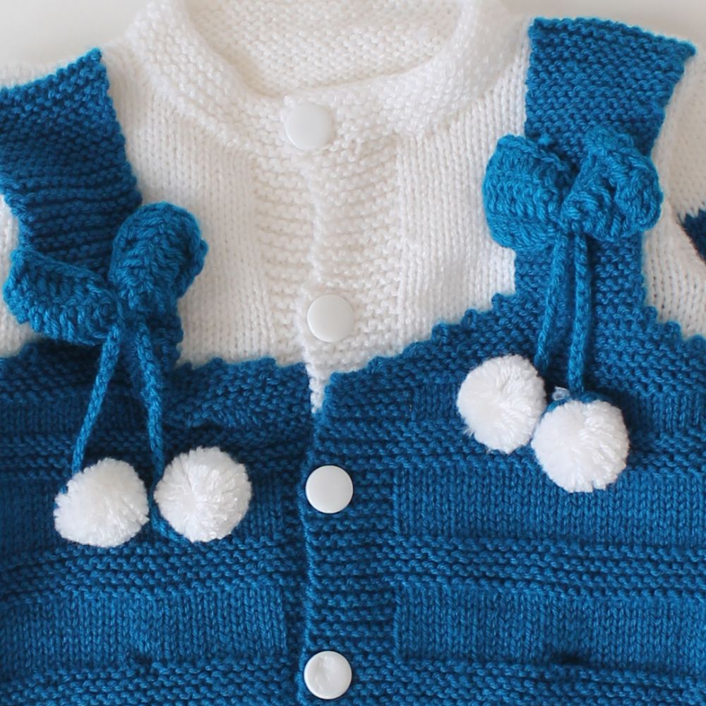 White and Blue Colored With White Pom-Pom Hand Knit Sweater Set