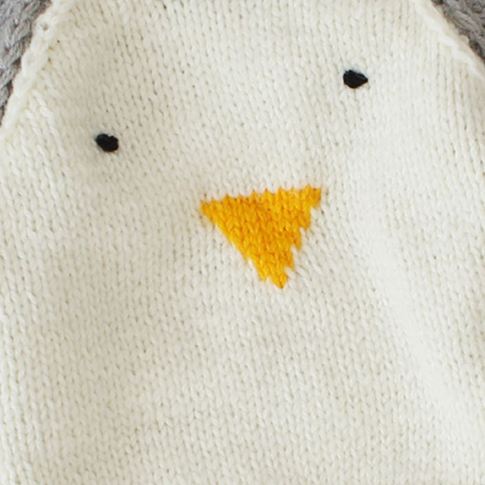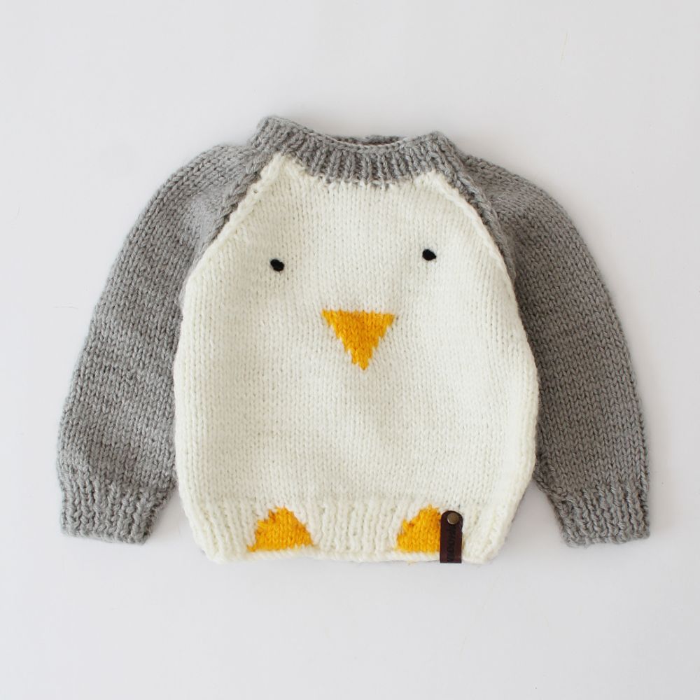 The sweater features an adorable owl design on the front. The central motif resembles an owl’s face, complete with two black dots for eyes and an orange triangular shape for the beak. Additionally, there are two orange patches on the lower front, suggesting the owl’s feet.Overall, this casual and playful sweater would be perfect for children or anyone who appreciates unique and fun fashion.