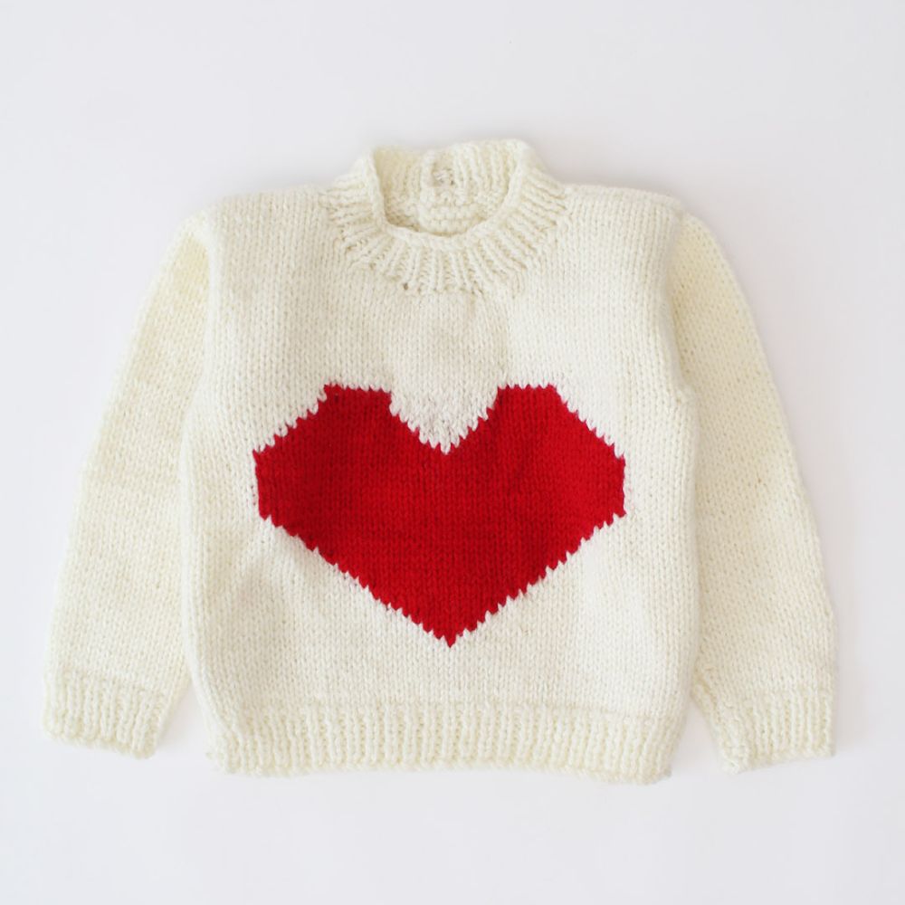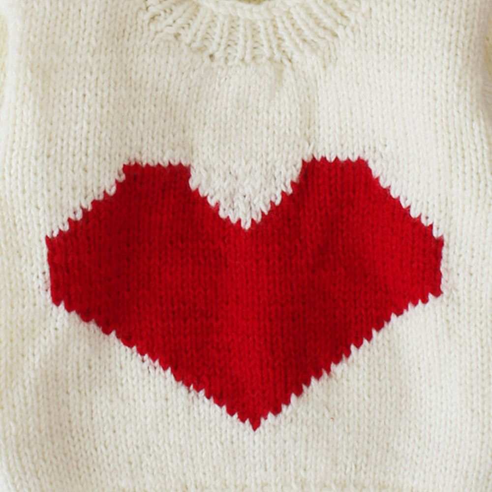 White Colored With Red Heart Shaped Emboidery Sweater set