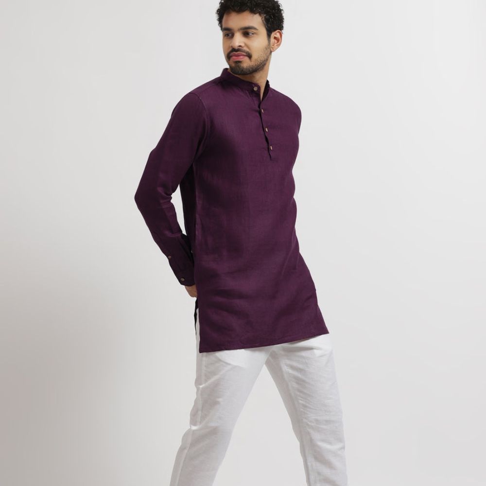 Whether you're dressing up for a festival or keeping it casual, this wine linen kurta brings out the perfect balance of comfort and style. Pair it with beige or white trousers, and you're all set to make a statement.